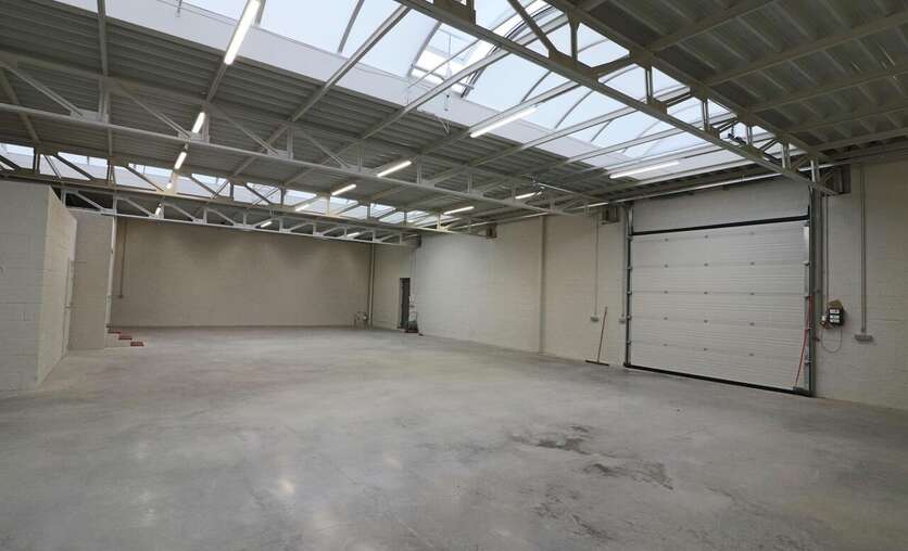 Zeer ruime en recente handelsruimte (opslag en/of kantoorruimte) vlakbij centrum Lubbeek met ideale locatie voor commercële activiteiten.