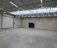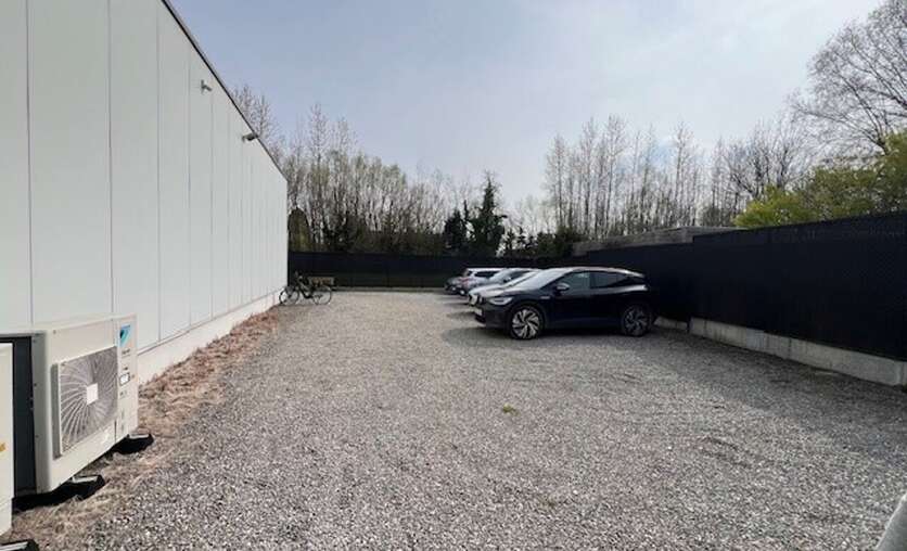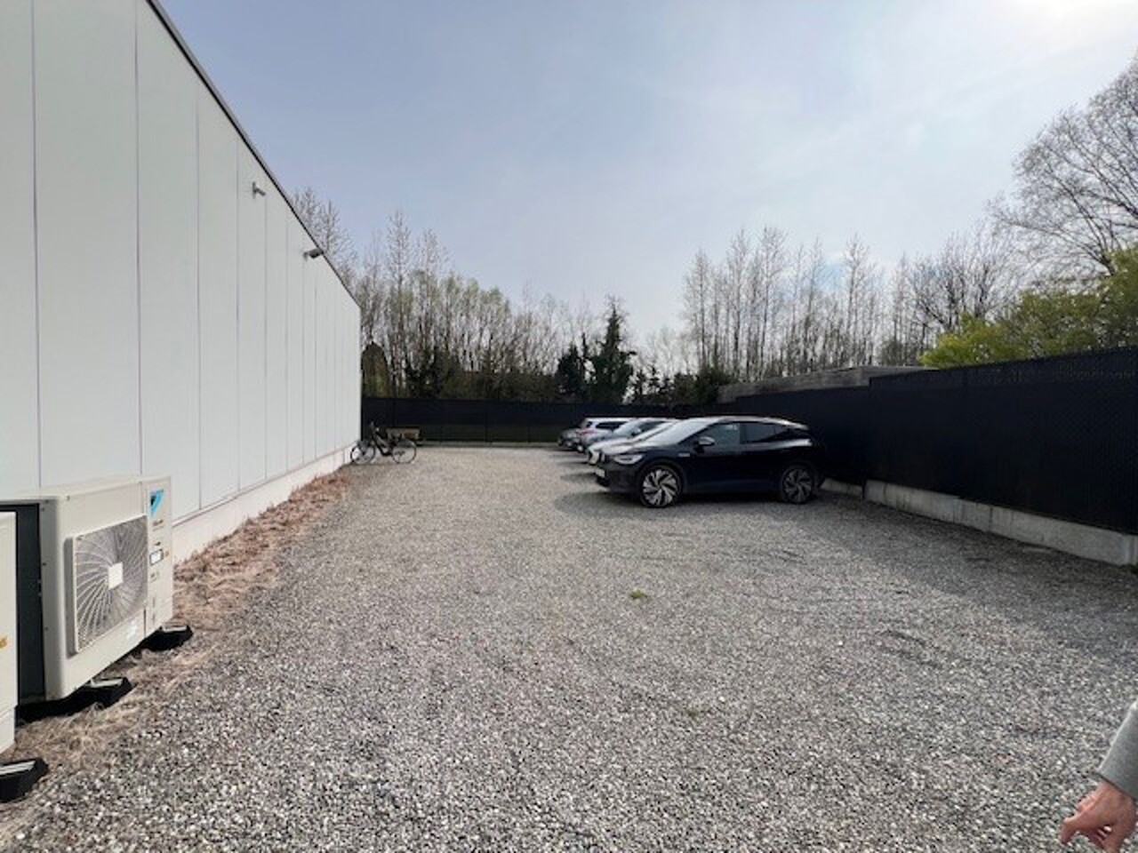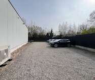 Het ruime magazijn bestaat uit twee delen die samen een oppervlakte vormen van 400 m² met daarbij een bureel, apart toilet en een grote parking achteraan.