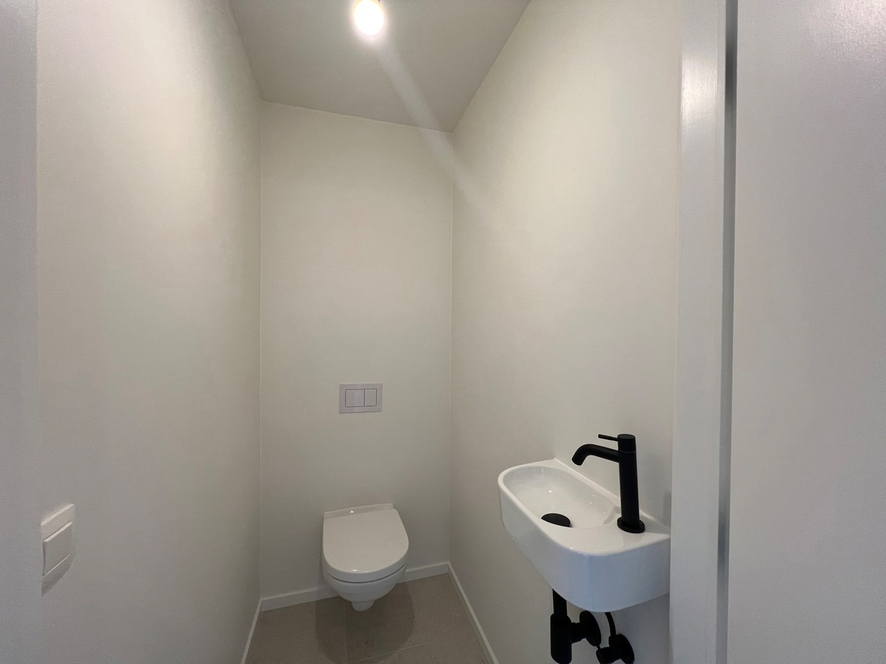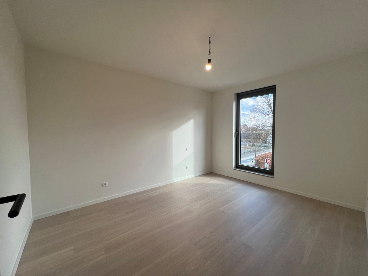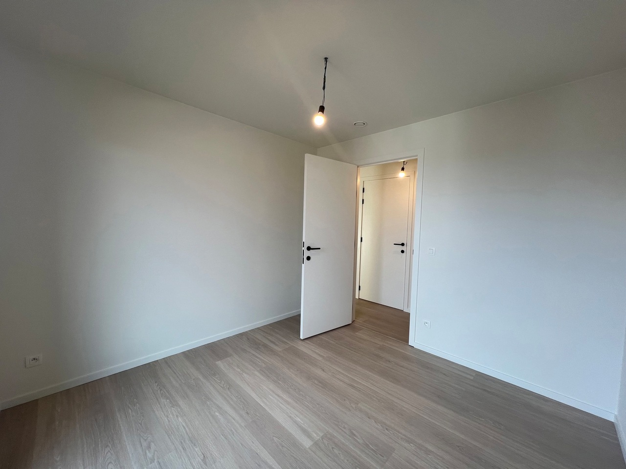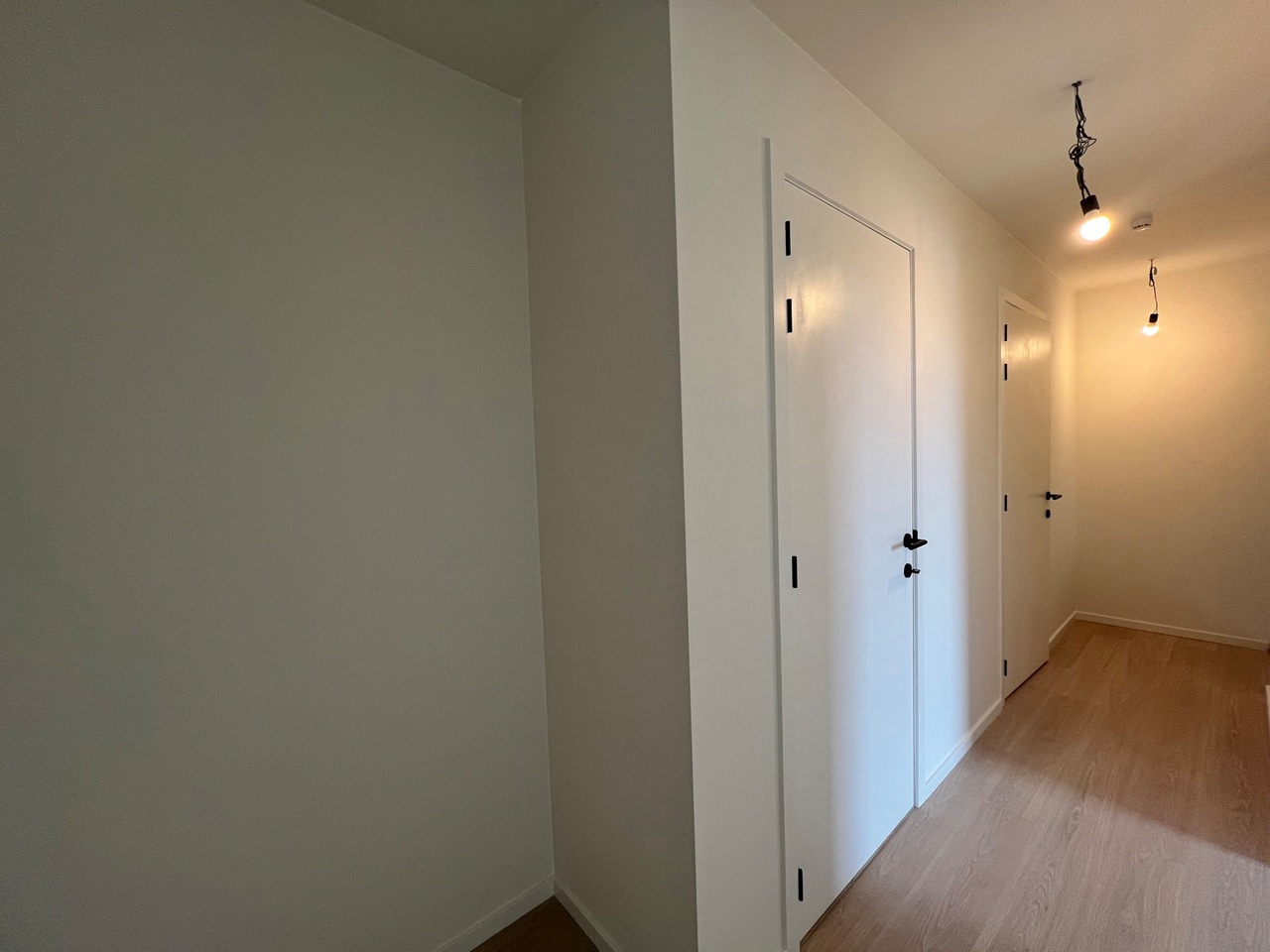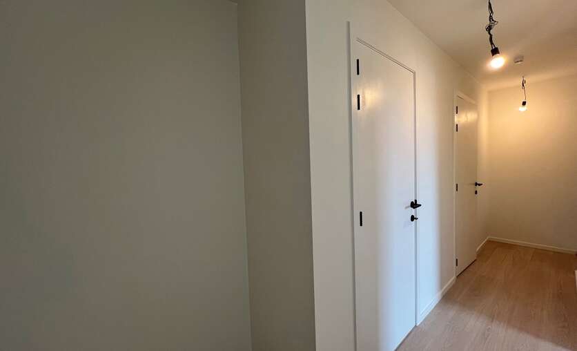 Het appartement is volledig geschilderd, bijna overal voorzien van verlichting en gordijnroedes boven de ramen.