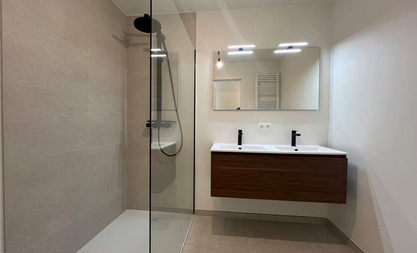 Gemeenschappelijke kosten: 70€/maand. Vloerverwarming met warmtepomp. EPB A & zonnepanelen.