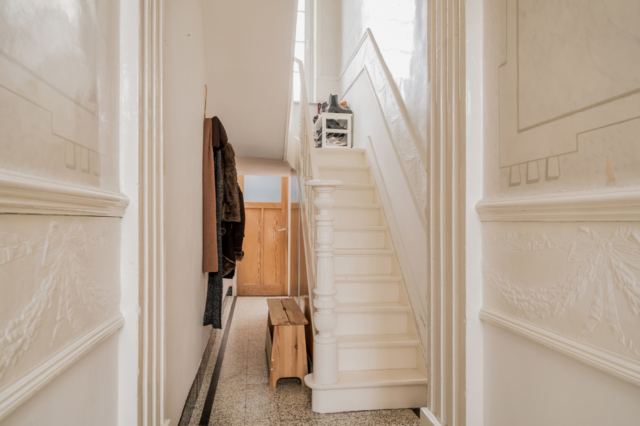 Wat meteen opvalt als je deze woning binnenkomt, is het karakter dat behouden werd: de hoge plafonds, de prachtige originele tegelvloer, ...