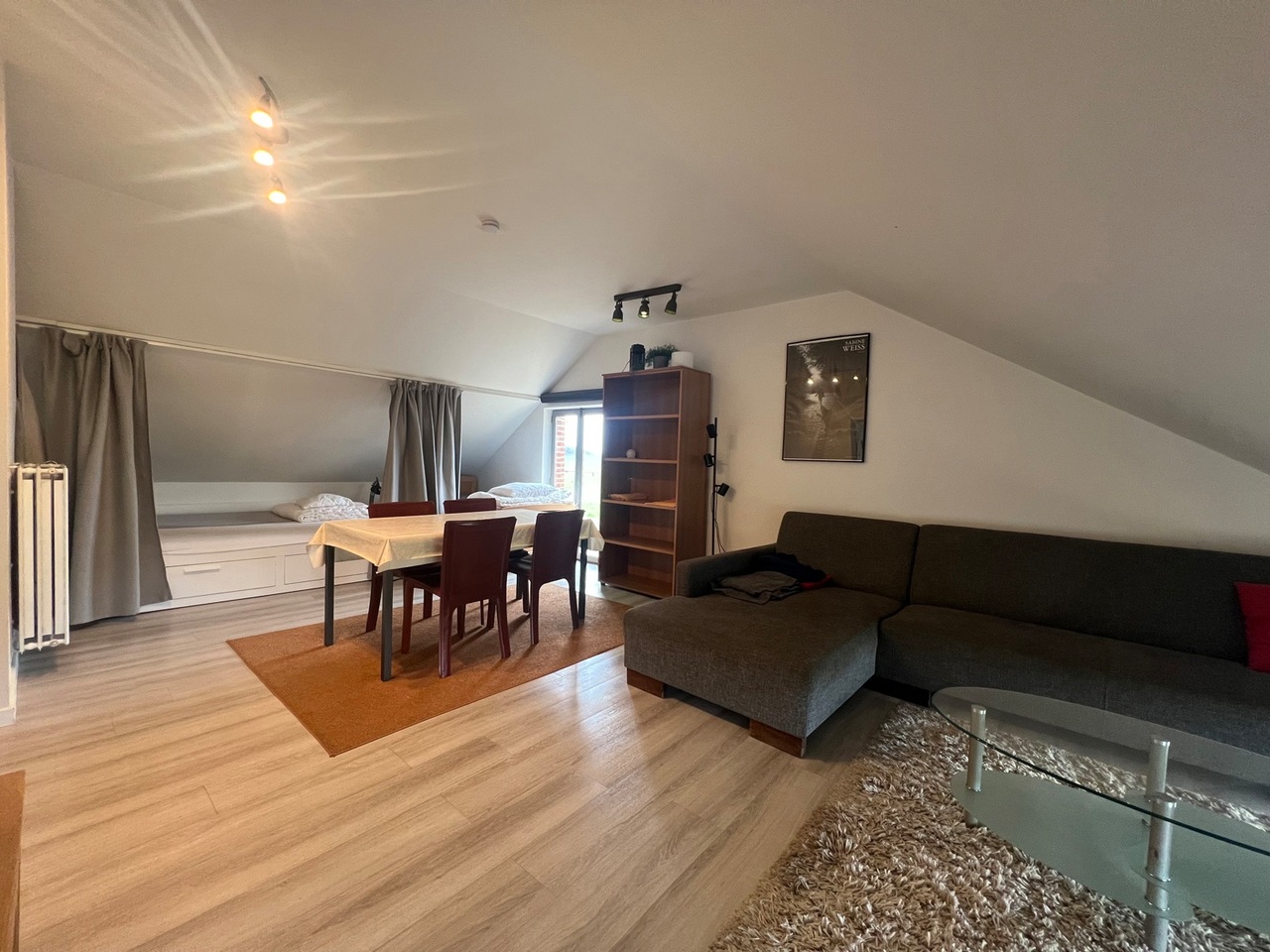 Gezellig appartementje met slaaphoek en staanplaats.