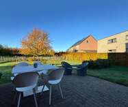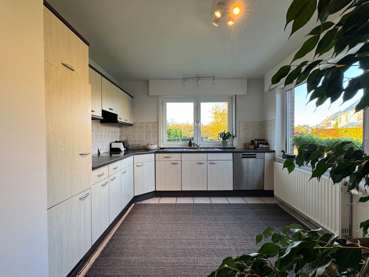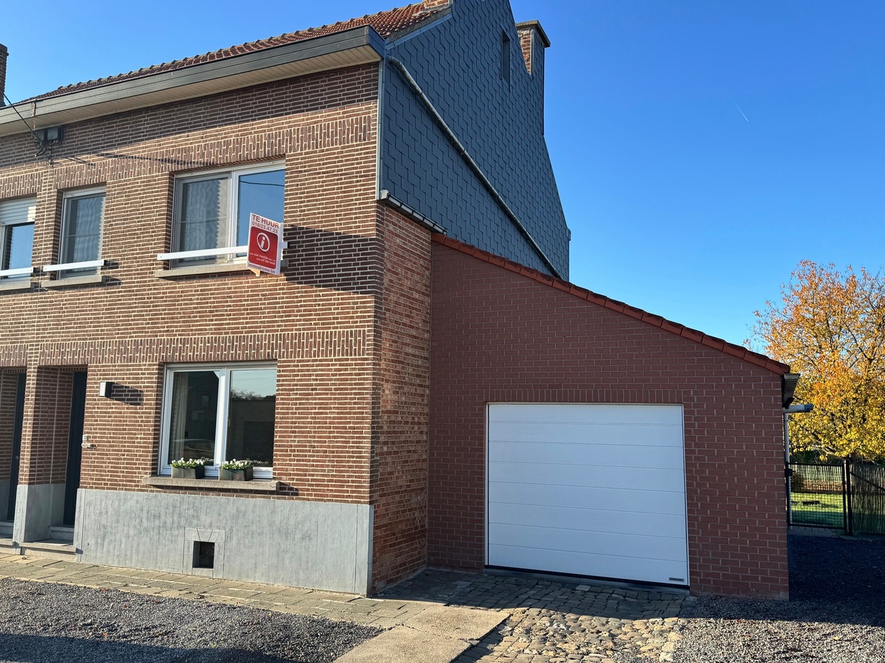 Gelijkvloers: Inkomhal, apart toilet, badkamer, woonkamer, eetplaats, open geïnstalleerde keuken, ruime garage met sectionaalpoort