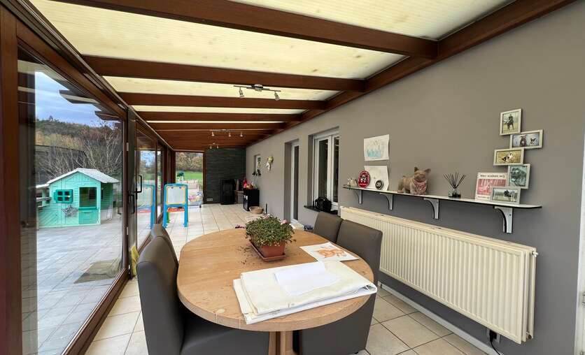 De woning telt 3 slaapkamers ( 1 beneden en 2 op de bovenverdieping). Er is een leuke woonkamer, ingerichte keuken, badkamer en veranda met zicht op terras en tuin.