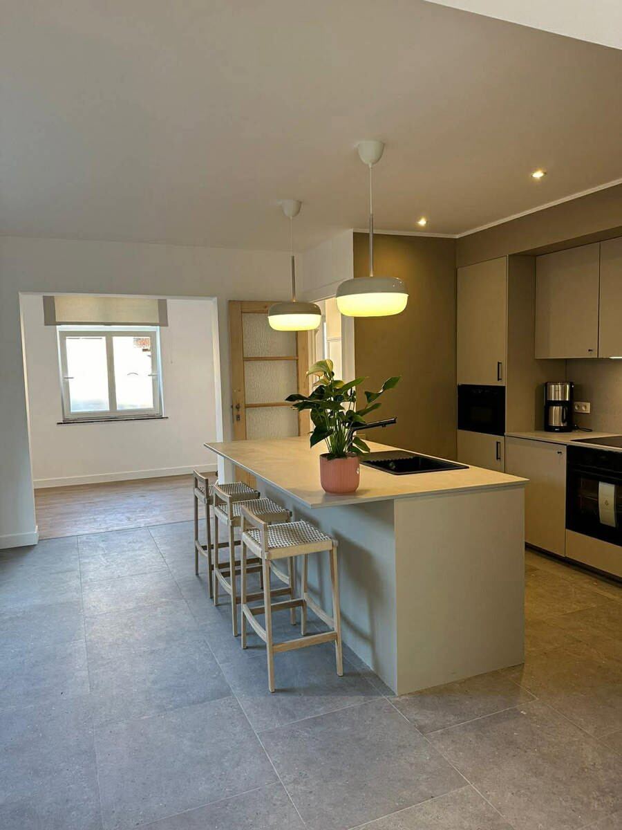 Bij het betreden van de woning word je verwelkomd in een lichtrijke en sfeervolle leefruimte. Aansluitend bevindt zich de moderne, recent vernieuwde keuken, uitgerust met een gezellige aperitieftoog – ideaal voor wie graag gasten ontvangt. Verder is er een praktische wasplaats aanwezig. Op de verdiepingen vind je twee ruime slaapkamers en een stijlvolle, vernieuwde badkamer met alle comfort. De zolderverdieping biedt bovendien de mogelijkheid tot het creëren van een extra slaapkamer, bureau of hobbyruimte.
