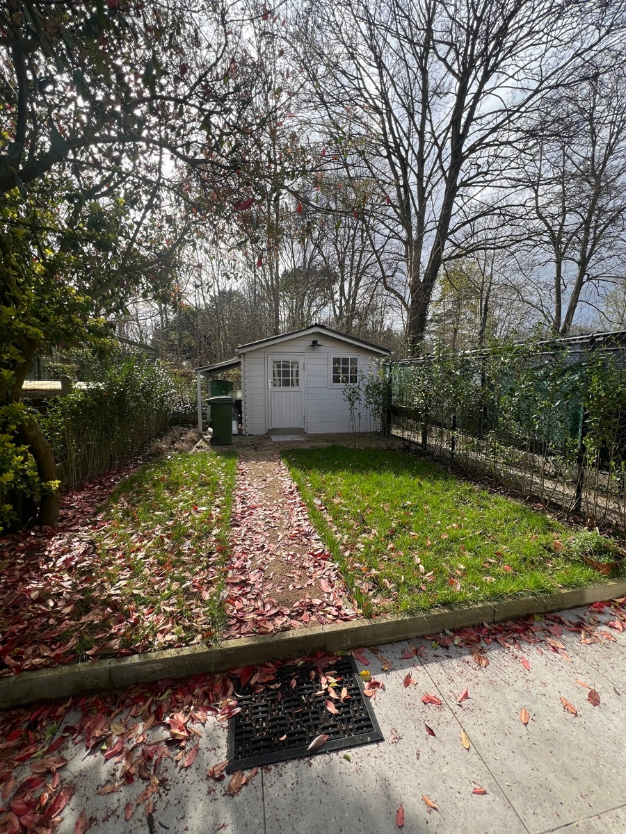 Buiten geniet je van een aangename tuin met tuinhuis en een gezellig terras – de perfecte plek om tot rust te komen.