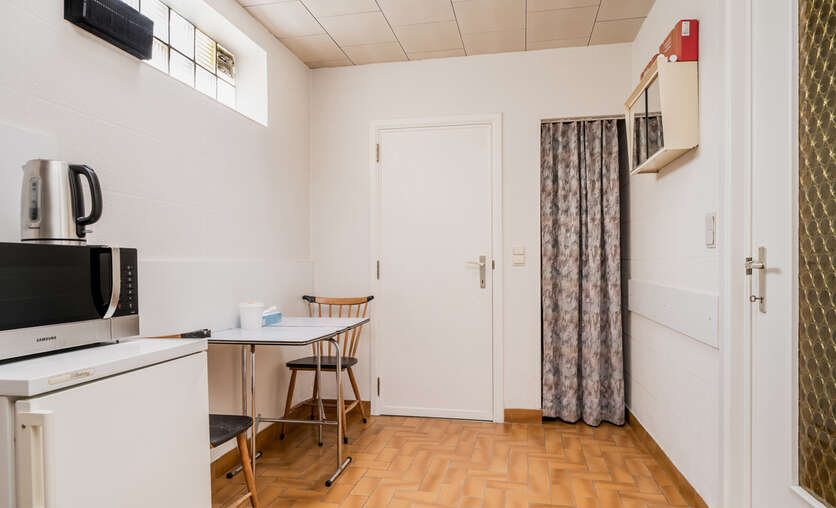 De handelsruimte kan op perfect gebruikt worden als winkel, praktijkruimte of kantoor voor een vrij beroep.