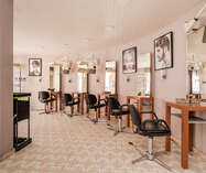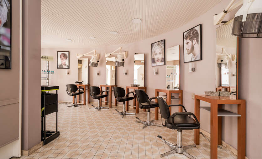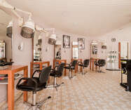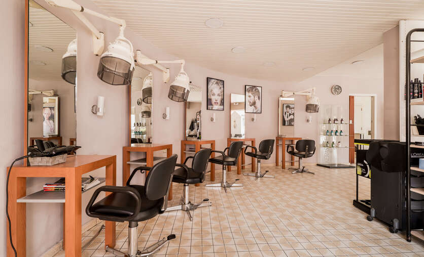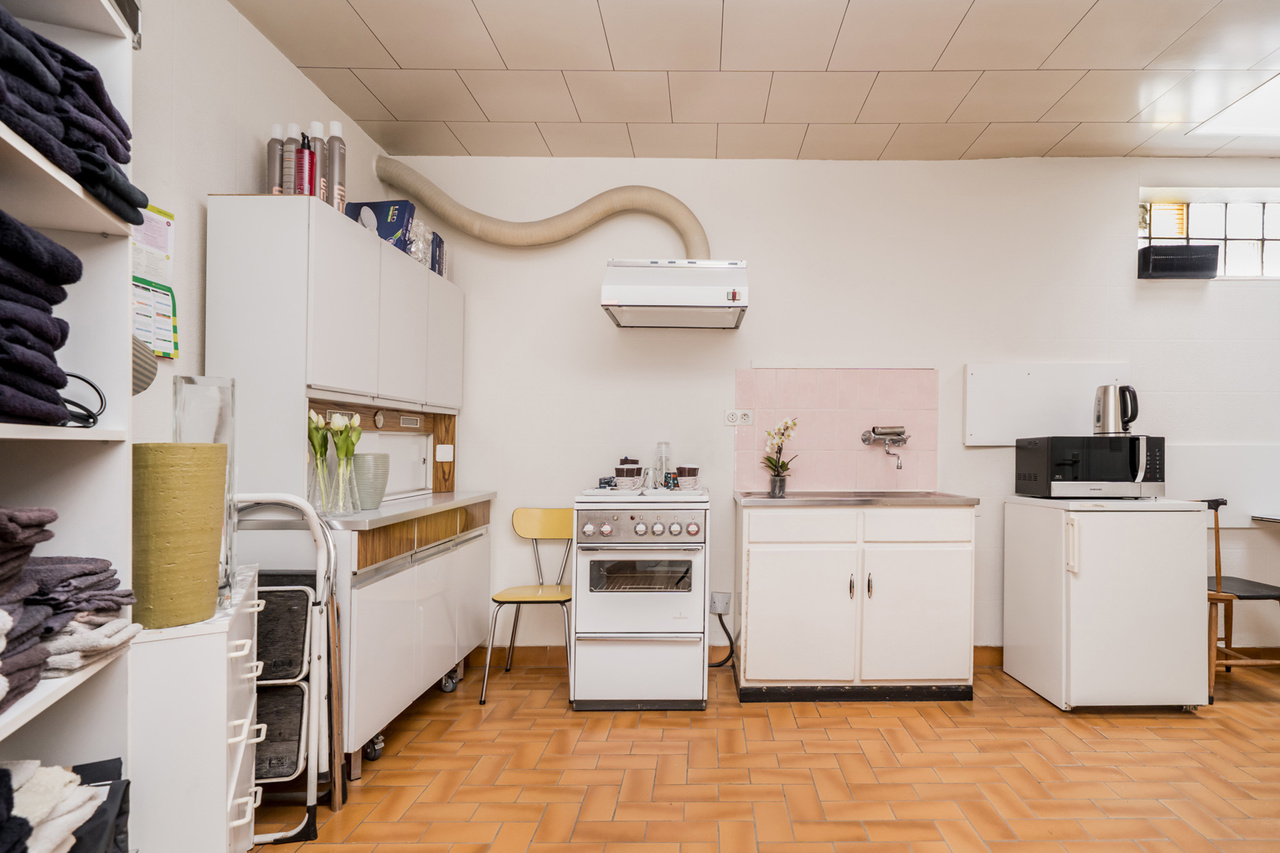 gelijkvloers: kapsalon met apart toilet, keuken, technische ruimte, toegang tot de kelder en garage.