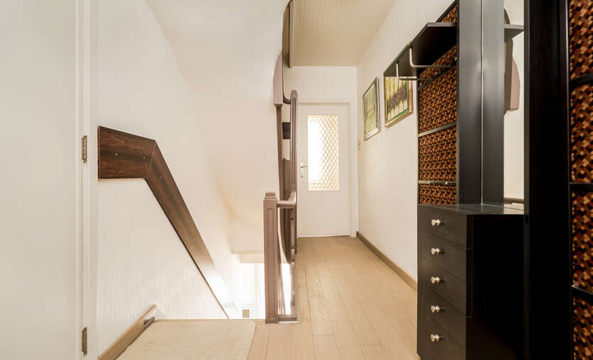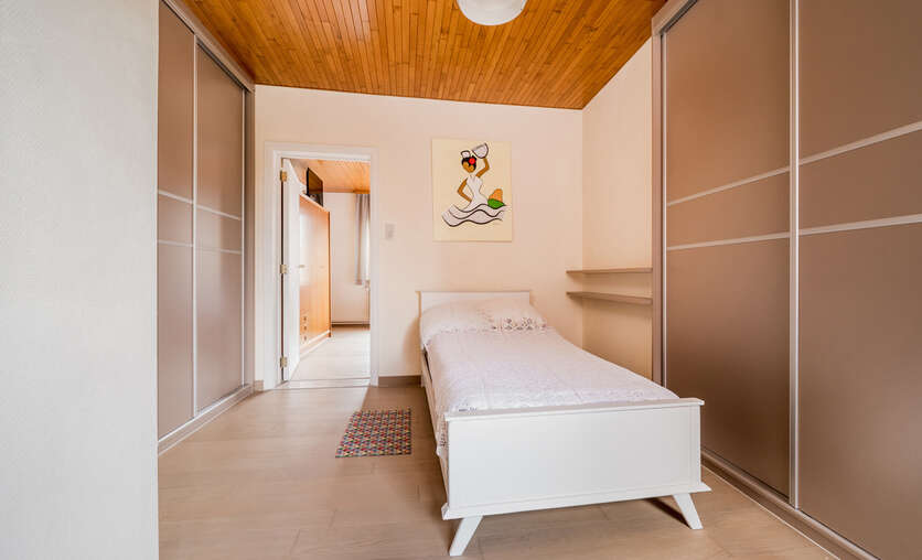 2de verdieping: grote slaapkamer, 2de slaapkamer of woonruimte, keuken en badkamer met toilet => deze verdieping is eigenlijk een appartement op zich