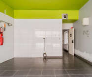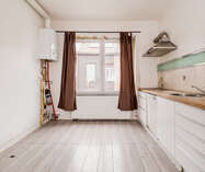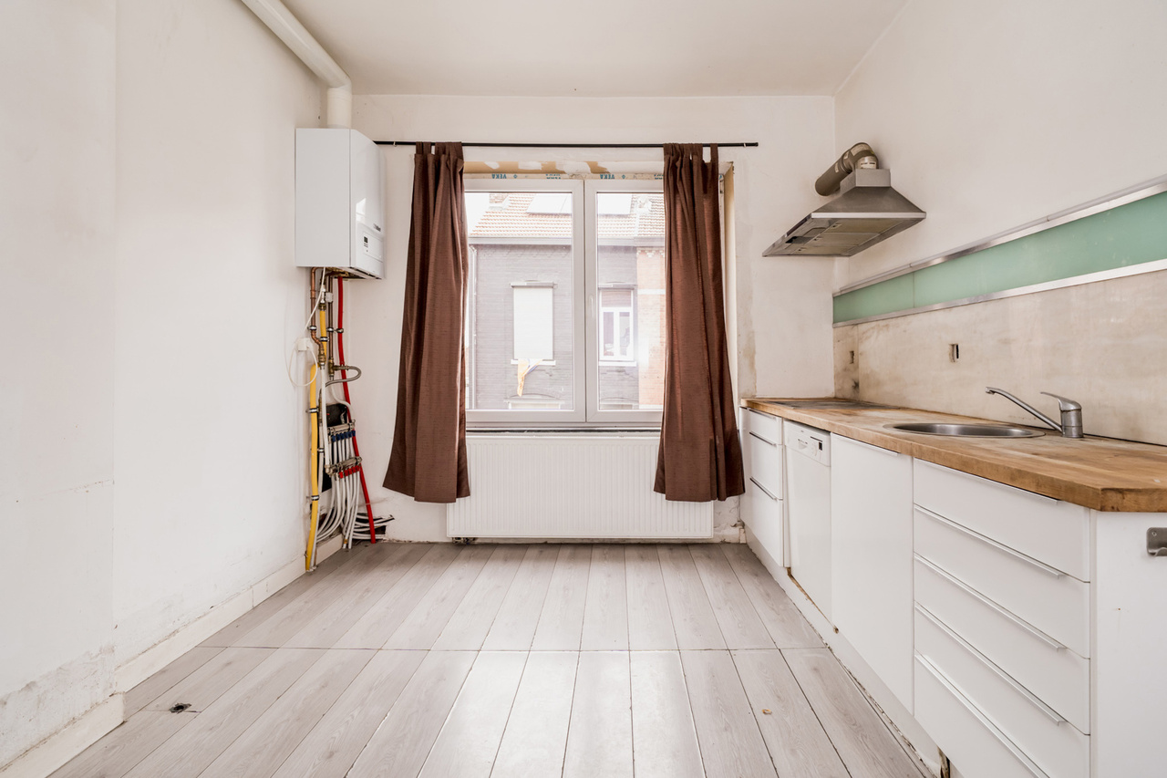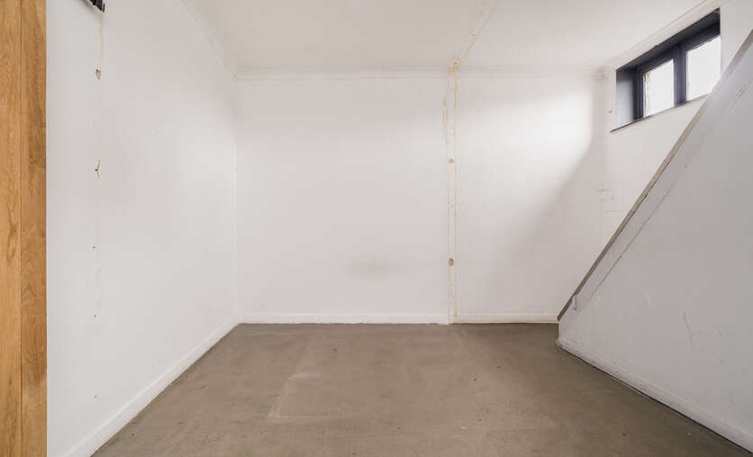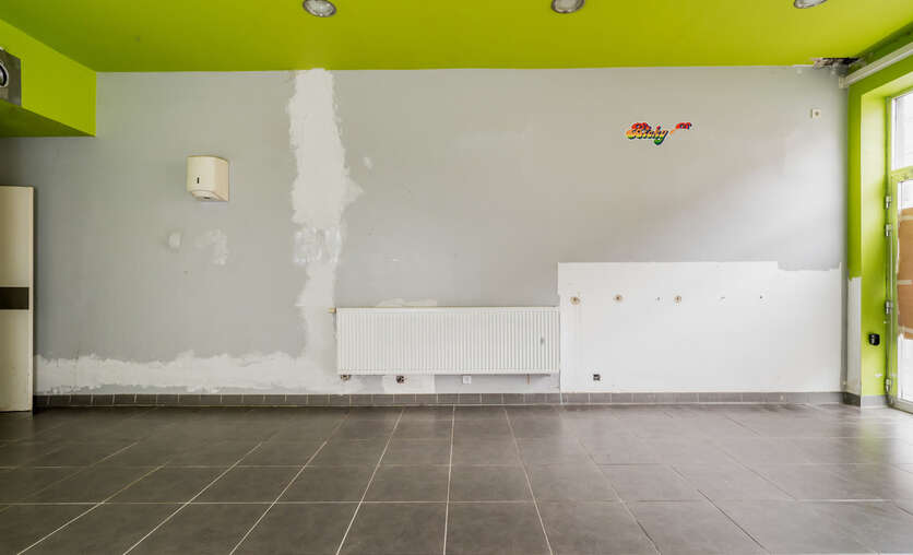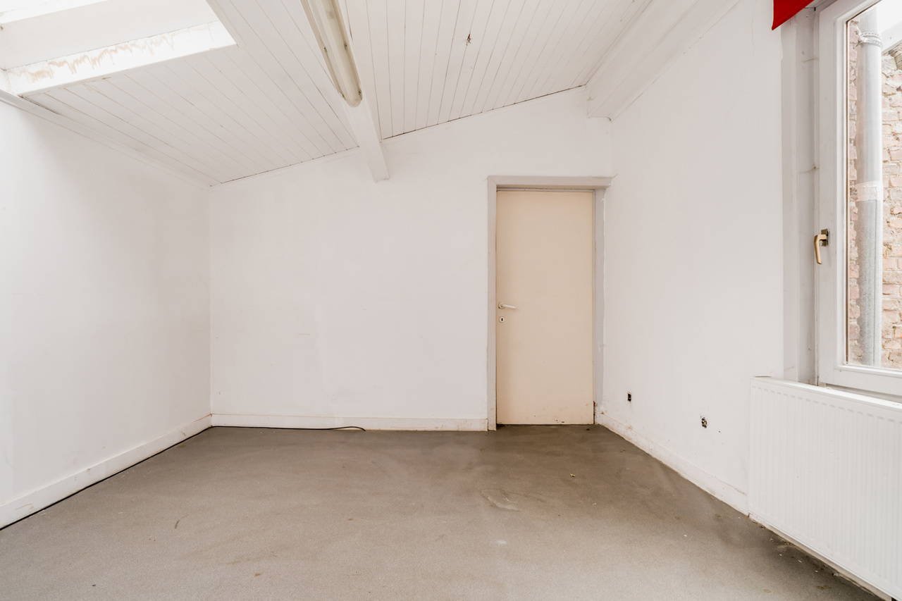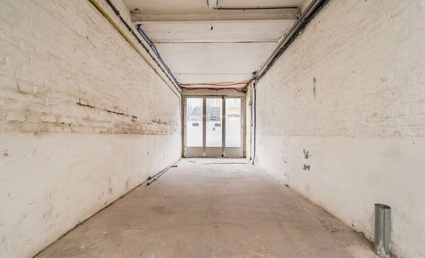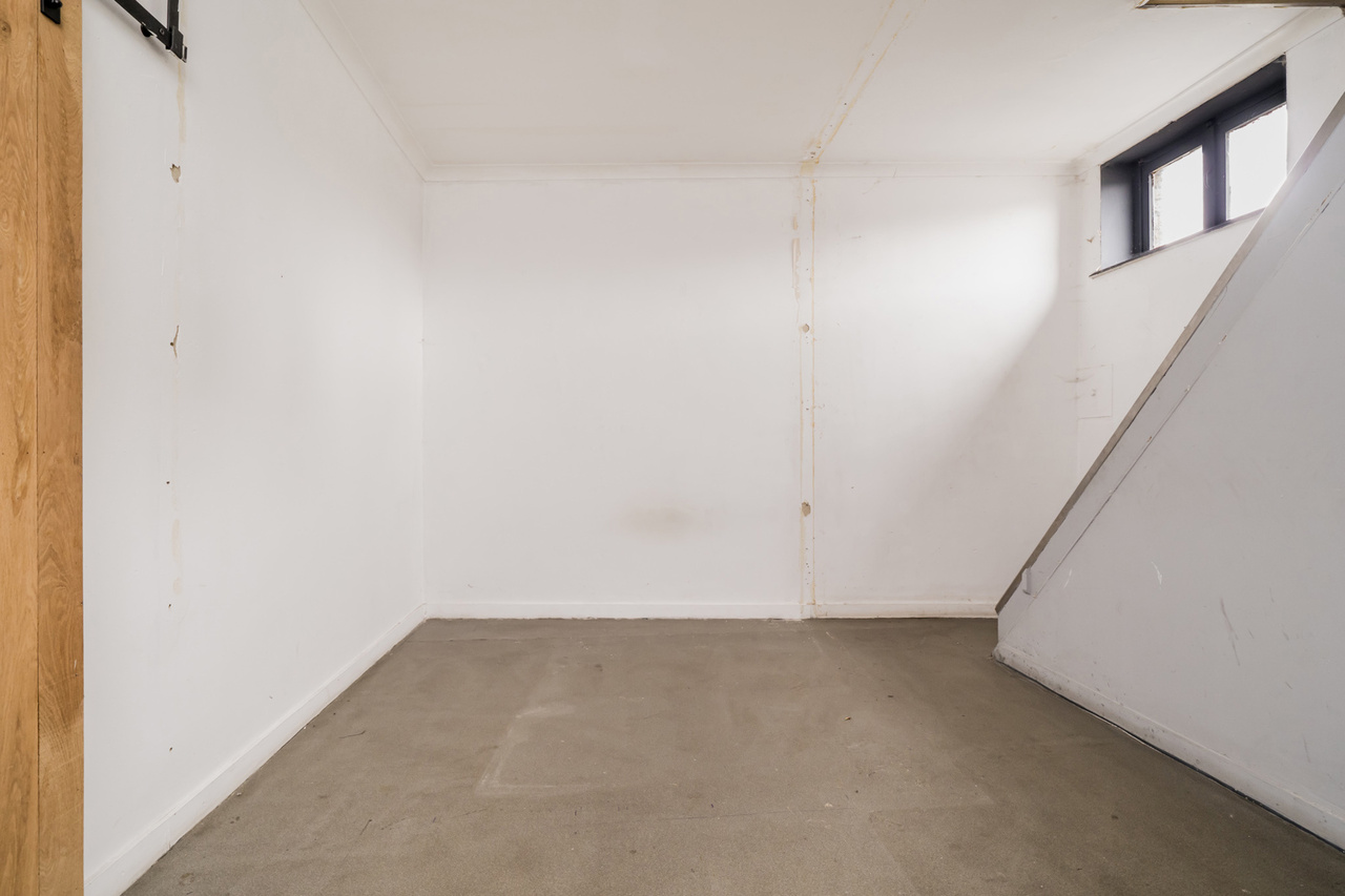 Het gelijkvloers omvat een winkel- of kantoorruimte, perfect voor een vrij beroep of zelfstandige activiteit. Achteraan bevinden zich een berging en badkamer of sanitair, evenals een voorraadkelder.