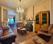 Achter de voorgevel wordt de woning een stuk breder en beschik je over een eetplaats, salon, zitkamer, keuken, badkamer, kleine aanbouw/veranda en een tuin met tuinhuisje.