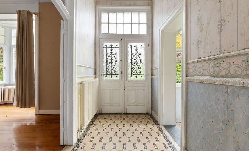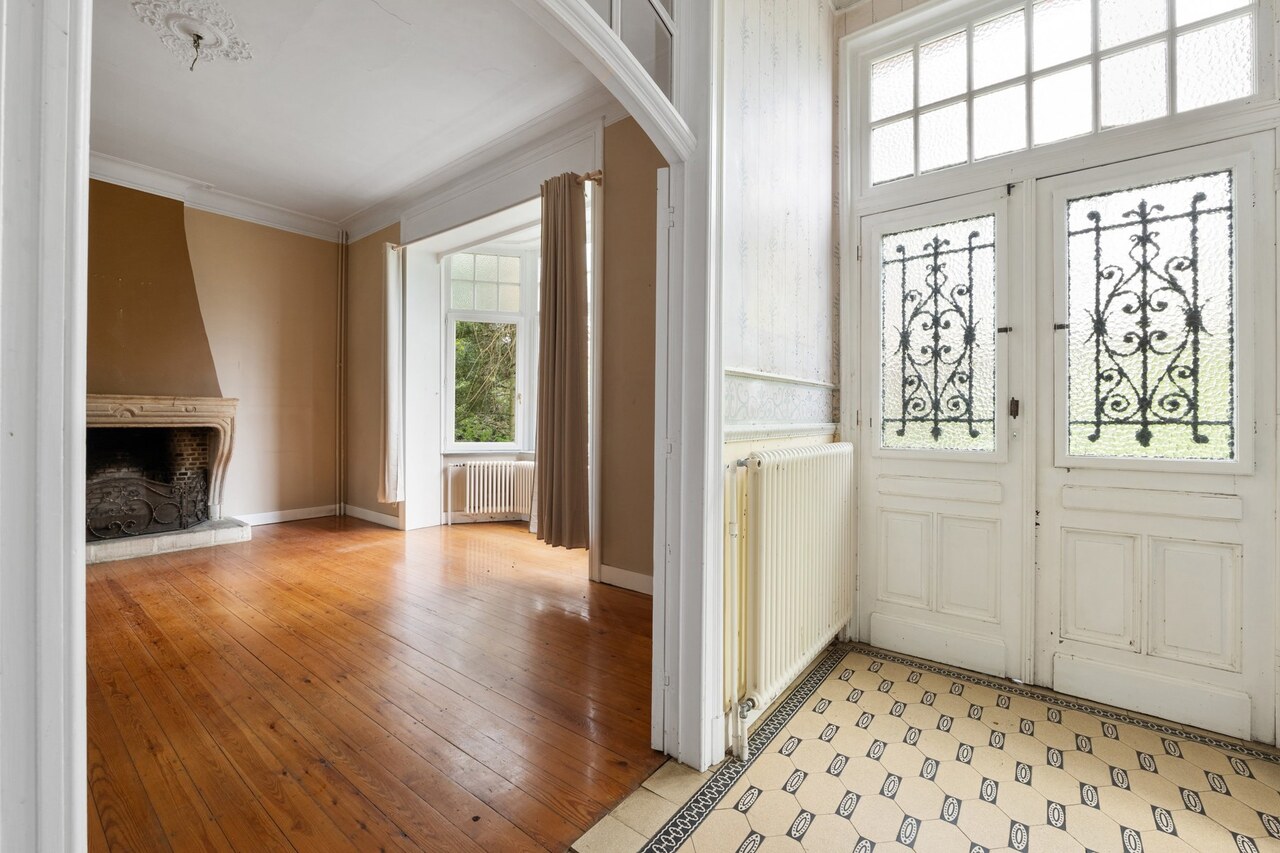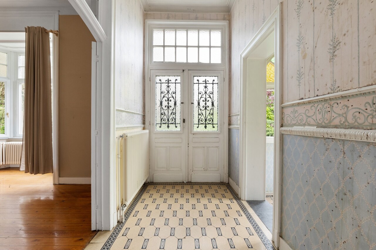 De woning staat momenteel leeg en heeft renovatie nodig, maar achter de statige gevel schuilt nog steeds haar indrukwekkende uitstraling. Authentieke elementen zoals de originele houten trappen, glas-in-loodramen, marmeren schouwen en houten binnendeuren getuigen van het vakmanschap van weleer en vormen een prachtige basis voor wie deze villa opnieuw wil laten schitteren.